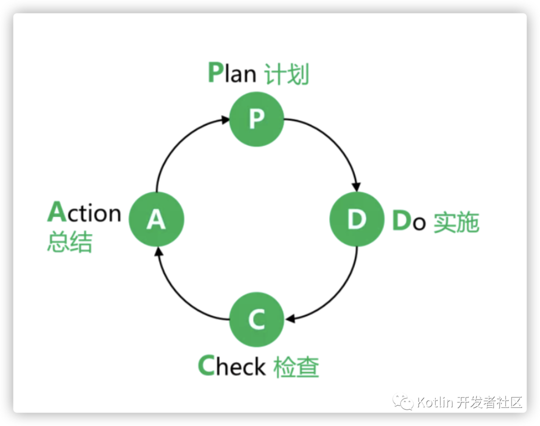 常用的闭环迭代框架是PDCA,通过计划(P)、实施(D)、检查(C)、总结(A)4个步骤,循环迭代,螺旋上升: