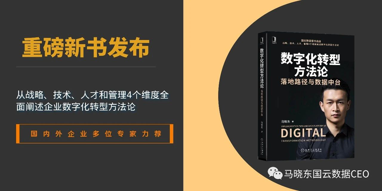 近日,由国云数据CEO马晓东所著的国内第一本从战略、技术、人才、管理四个维度全方位、立体化地阐述数字化转型方法论和落地路径的专业书籍《数字化转型方法论:落地路径与数据中台》上线当当、天猫、京东等各大电商平台。