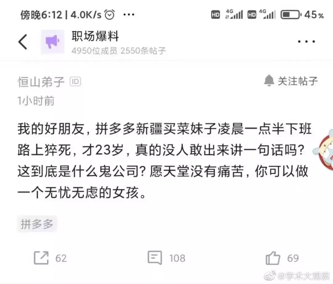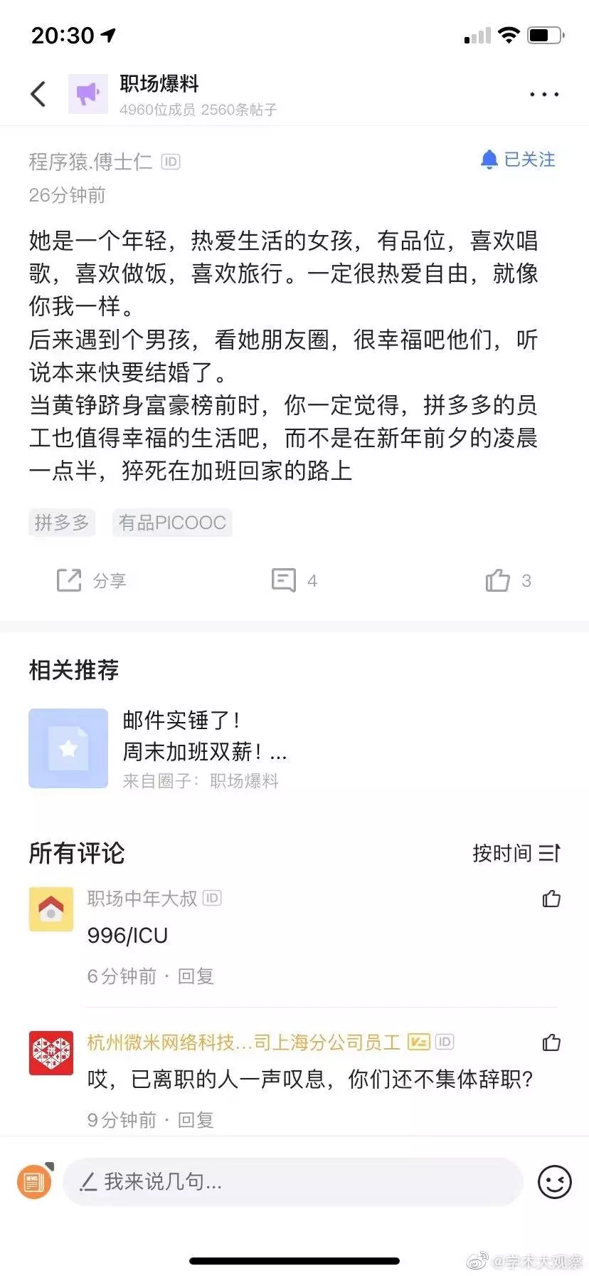 @greenghost :传言:拼多多98年女员工,加班回家路上猝死