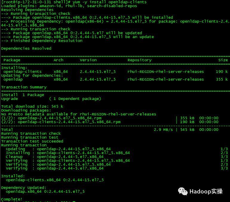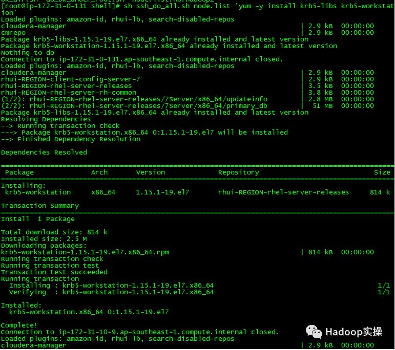 [root@ip-172-31-6-83 shell]# sh ssh_do_all.sh node.list 'yum -y install krb5-libs krb5-workstation'