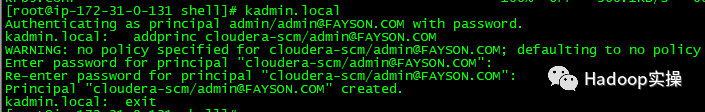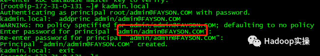kadmin.local: addprinc admin/admin@FAYSON.COM