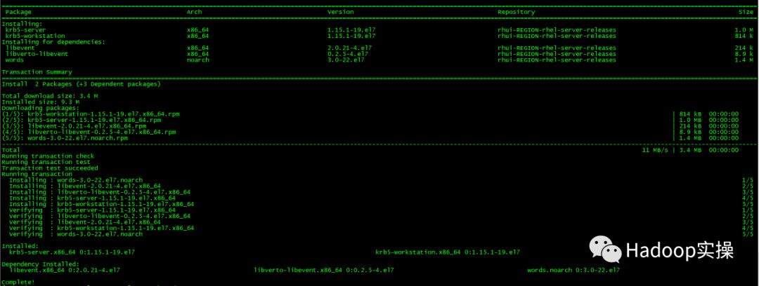 [root@ip-172-31-6-83 ~]# yum -y install krb5-server krb5-libs krb5-auth-dialog krb5-workstation