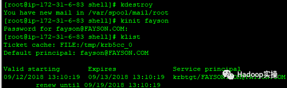 [root@ip-172-31-6-83 shell]# kinit fayson