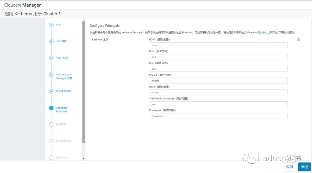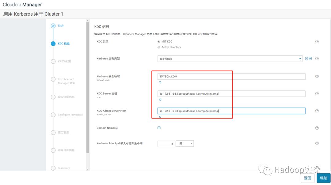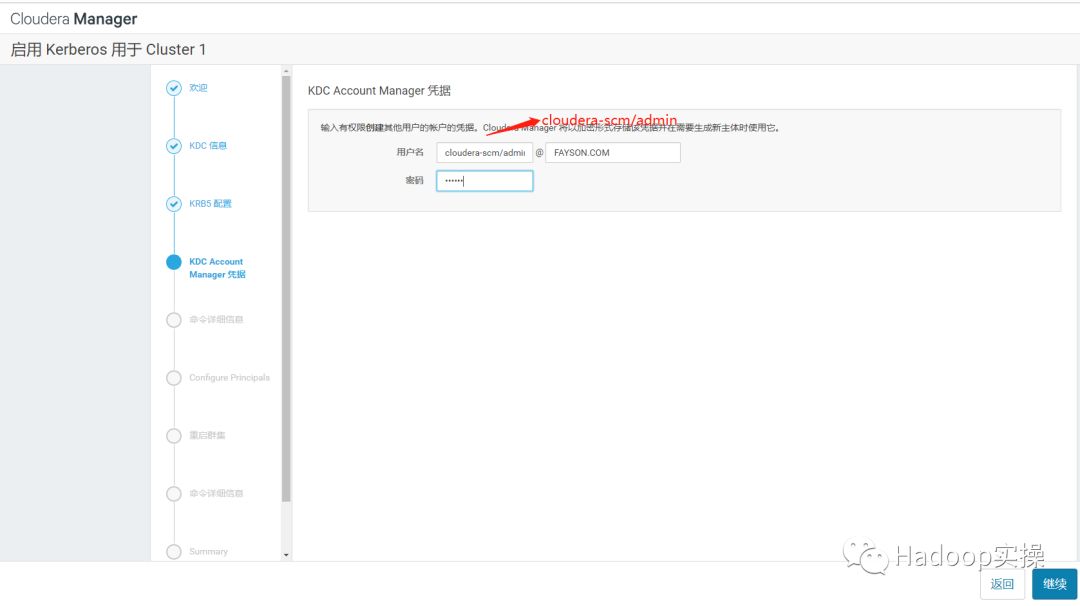 标红部分为Kerberos管理员账号,需要输入管理员密码。