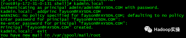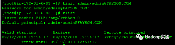 [root@ip-172-31-6-83 ~]# kinit admin/admin@FAYSON.COM