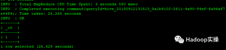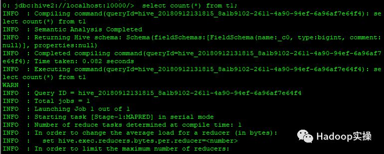 0: jdbc:hive2://localhost:10000/> select count(*) from t1;