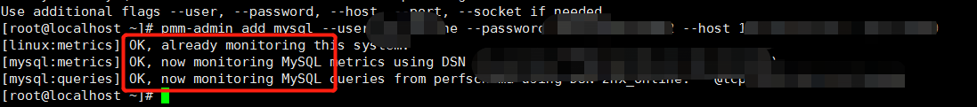 pmm-admin add mysql --user root --password 123456 --host 192.168.111.129(填写mysql安装机器ip) --port 3306