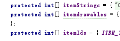 protected int[] itemIds = { ITEM_TAKE_PICTURE, ITEM_PICTURE ,ITEM_VIDEO };