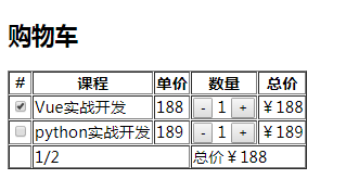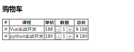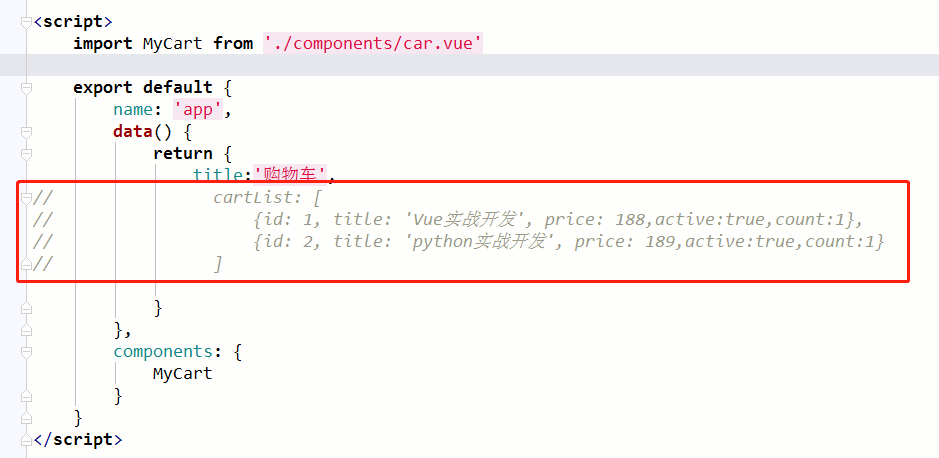 {id: 2, title: 'python实战开发', price: 189,active:true,count:1} # 构造假的数据