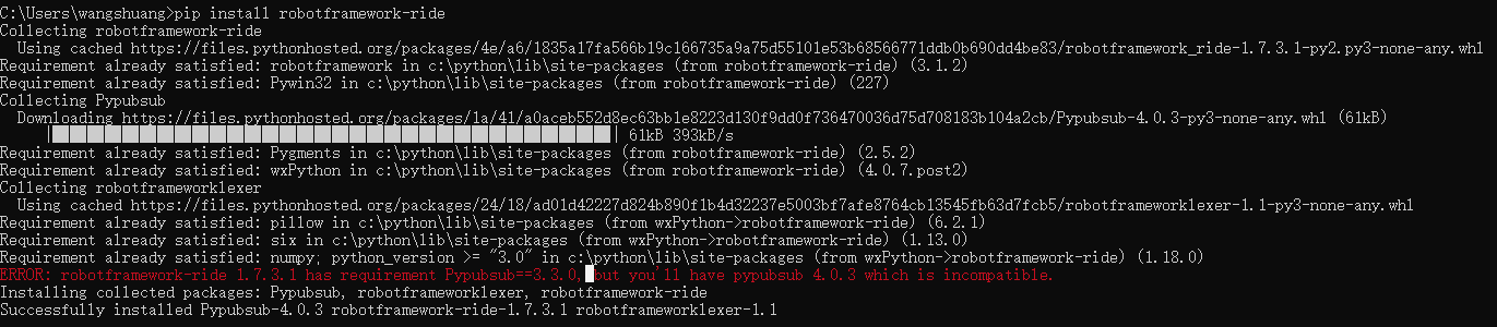 直接用命令 pip install robotframework-ride