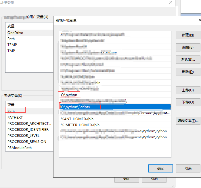 在环境变量中加入python 和script 的安装地址