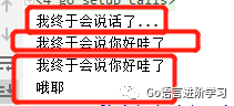 func say2(c string) {fmt.Println("我终于会说" + c + "了")}