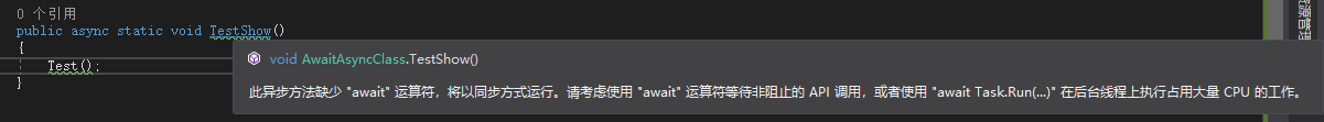 2、await放在Task前面,async和await是成对出现的,只有async是没有意义的,只有await是报错的。