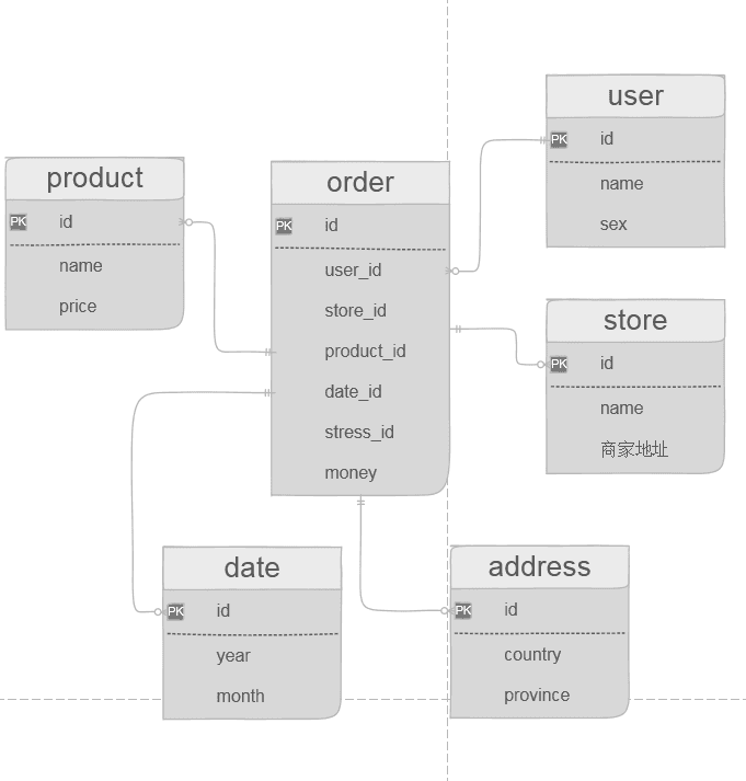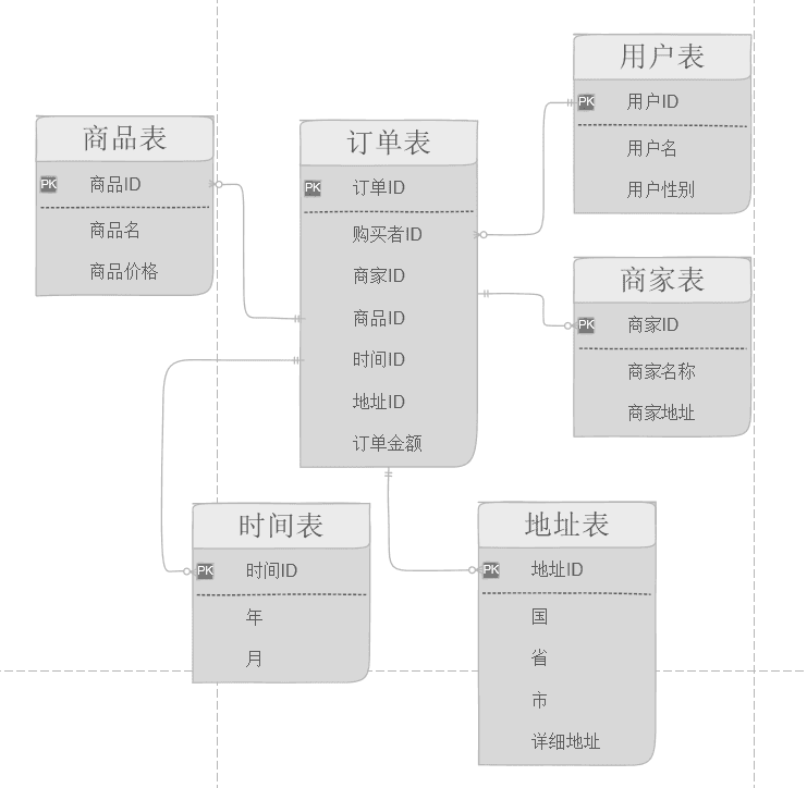 图中的订单表就是一个事实表,你可以理解他就是在现实中发生的一次操作型事件,我们每完成一个订单,就会在订单中增加一条记录。