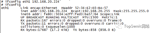 5) 插上网线连接PC和板子,ifconfig 配置网卡,电脑IP网段要和板子一致。