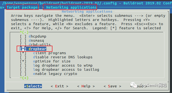 这里我要使用dropbear来实现ssh和scp的功能,只要到Networking application里选中就行了。