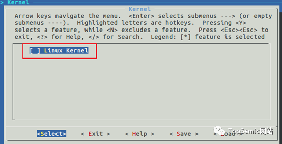 配置嵌入式系统的内核.因为我们不在Buildroot里编译内核,所以我们不需要选中内核相关配置。默认的是选择的,需要取消掉。