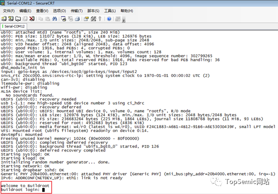 烧录到板子里正常启动后,使用USB转TTL串口,连接PC和板子,可以看到系统可以正常起来,host name是buildroot,和我们上面的配置一致。