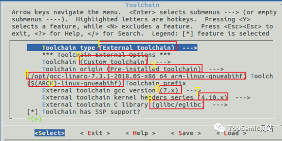 注1:上面标号6那里External toolchain gcc version的查看方式是:先 export PATH=$PATH:/opt/gcc-linaro-7.3.1-2018.05-x86_64_arm-linux-gnueabihf/bin