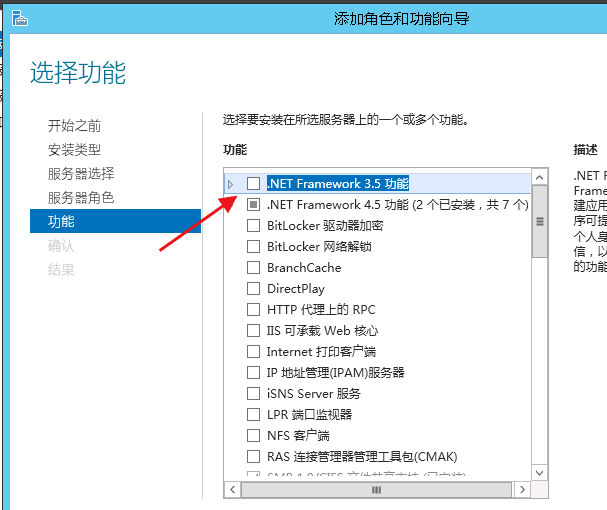 三,选择添加.net3.5功能