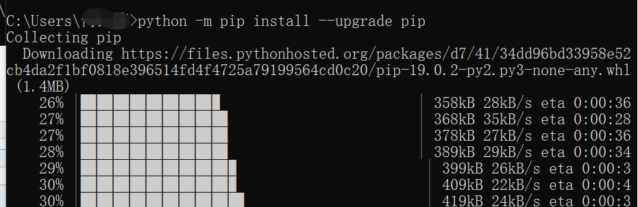 第二步,有安装还提示pip找不到,猜测可能是pip版本不对,更新pip
