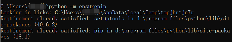 第一步:python -m ensurepip,确定是否有安装pip,如下图,实际是有安装的
