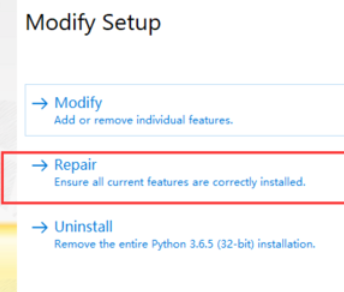 我是windows10,首先左下角Windows----设置 按钮,并且在windows设置里面找到 应用----搜索python------修改------repair