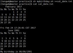 接下来我们运行显示生日的脚本,将结果追加在cal_date.txt中: