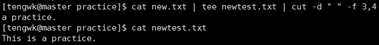 命令tee可以起到数据流分流的作用,例如我们将数据同时显示到屏幕上(以便下一步处理)并保存到一个文件: