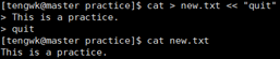 命令cat可以将文件内容转换为标准输出显示到屏幕上,同时也可以将键盘输入到屏幕上的内容写入新的文件: