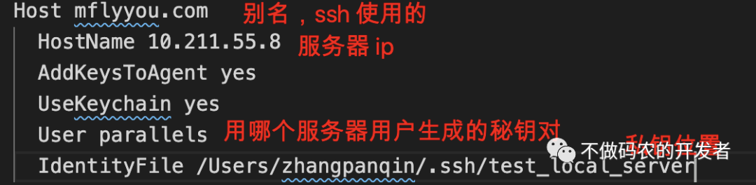 IdentityFile /Users/zhangpanqin/.ssh/test_local_server复制代码