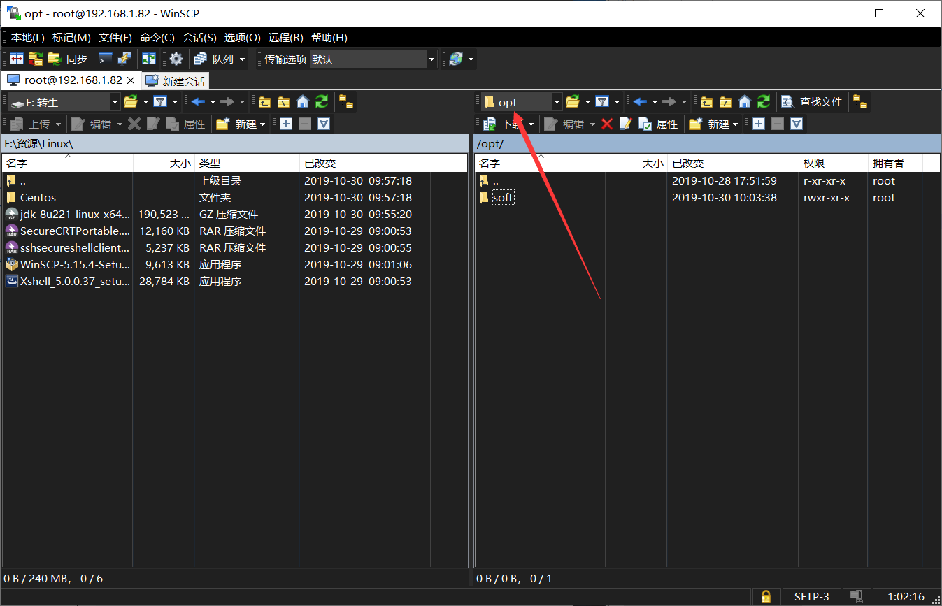 1、下载jdk(官网下载tar.gz格式的文件),使用WinSCP将文件传递进Linux (鼠标拖动即可传递文件,注意把文件放到/opt目录)
