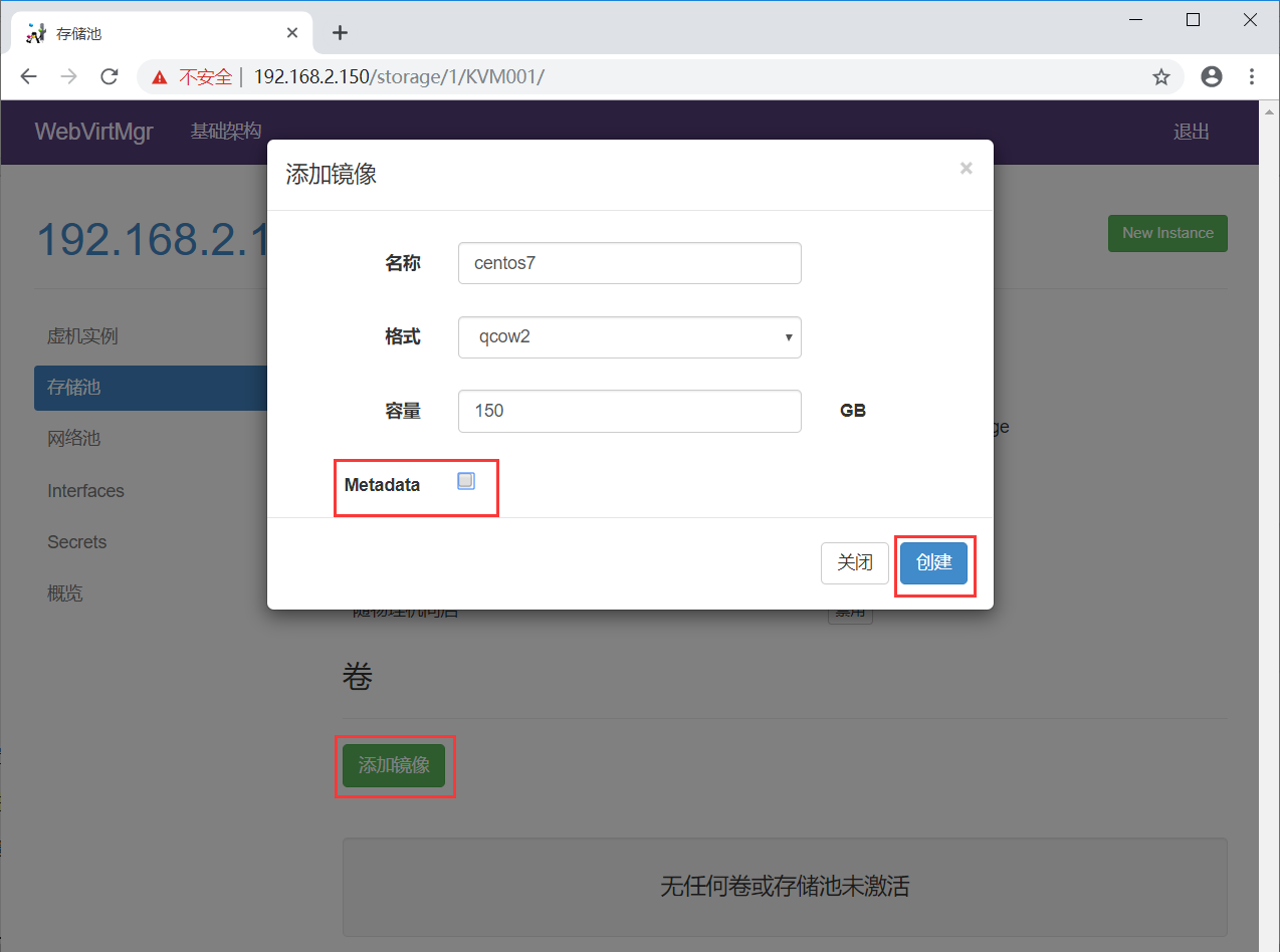 这里添加的“镜像”就是所创建虚拟机的硬盘空间(我测试环境给了150G)
