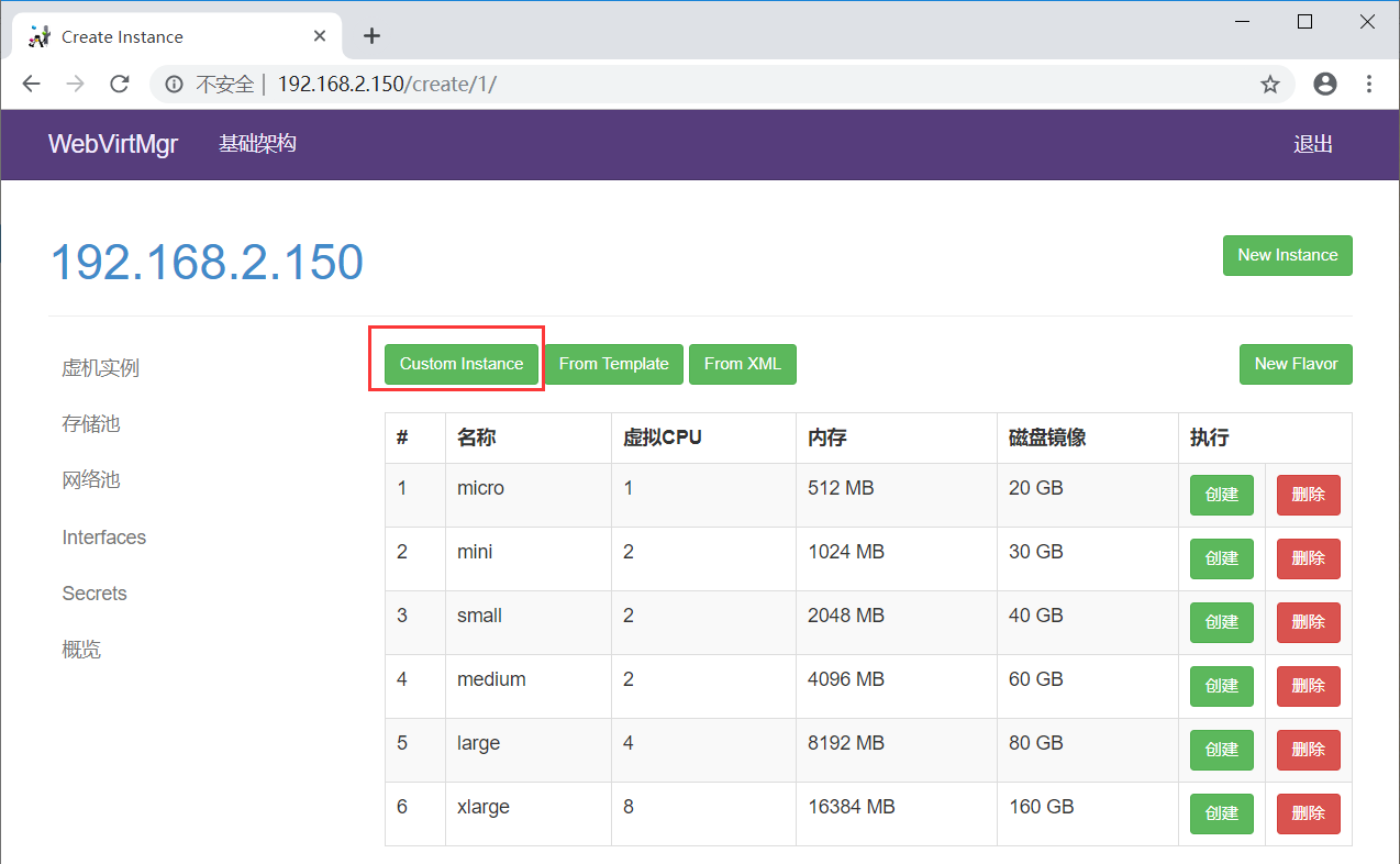 点击“Custom Instance”
