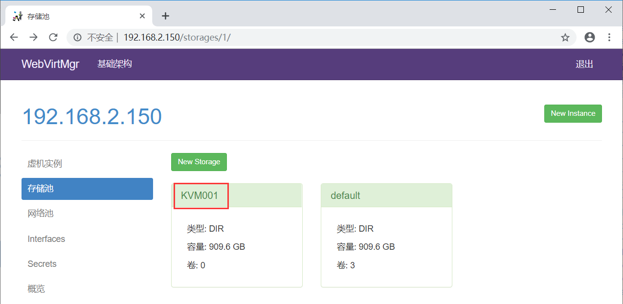 例:# mkdir -p /home/kvm/kvmstorage