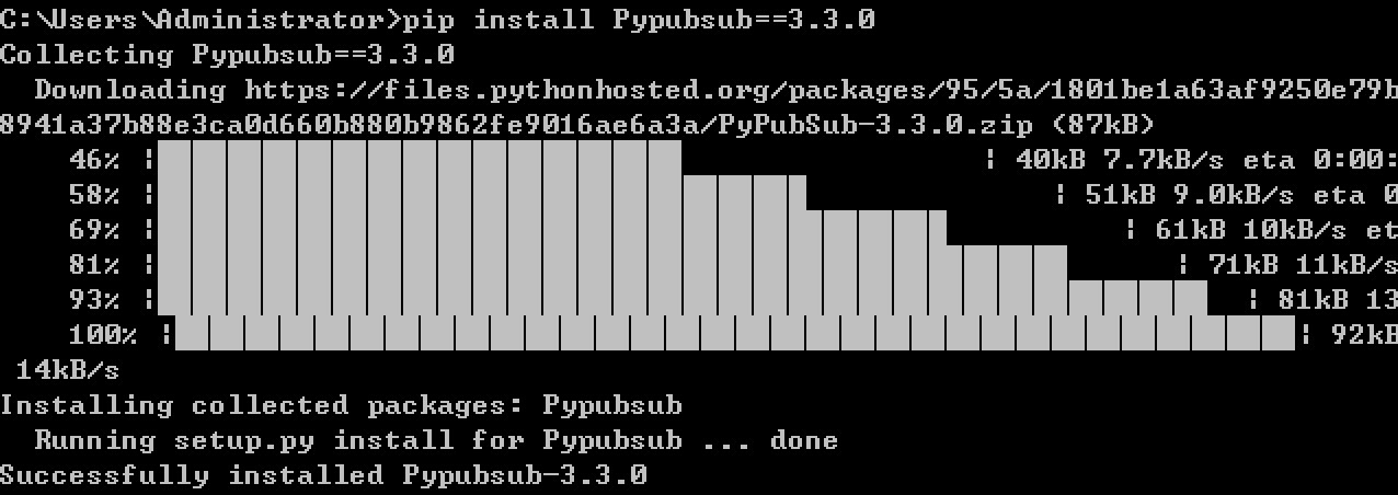 - 在线安装 Pypubsub 在dos命令中输入 pip install Pypubsub==3.3.0