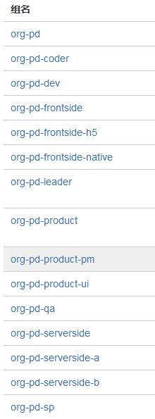 第一级:org代表是一个组织架构,还有其他如:jira(jira系统角色)、auth(权限角色) 第二级:pd代表行政架构,大部门或者中心:product&develop 第三级:代表角色或者职能,比如:leader(管理岗),coder(编码人员),前端(frontside),后端(serverside) 第四级:代表二级部门,比如前端分为h5(h5)和原生(native) 中间用连字符隔开。 这样的好处是我们很容易理解和记忆,在JQL输入语法时,也能够很好的利用语法提示。 多层级都有用户组,这样在添加用户的时候会稍显麻烦,但是会方便后期根据多种维护进行数据筛选。添加用户我们一般也是指定某个用户作为样本,添加同样的用户组,不会遗漏。