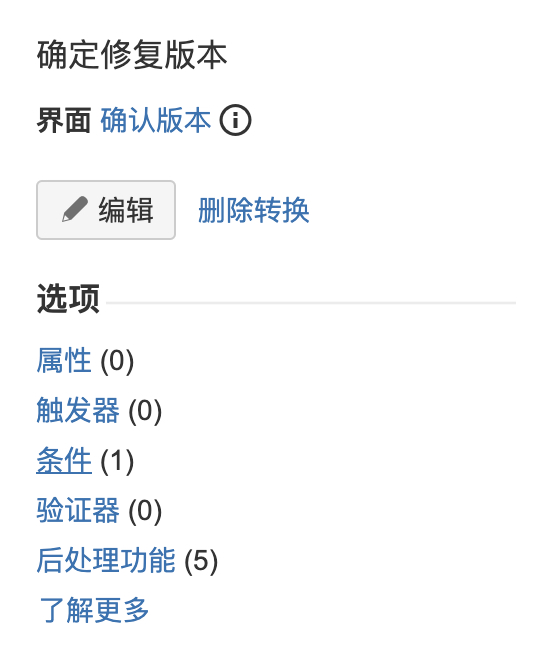 - 设定了一个单独的界面“确认版本界面”,上面展示修复版本字段