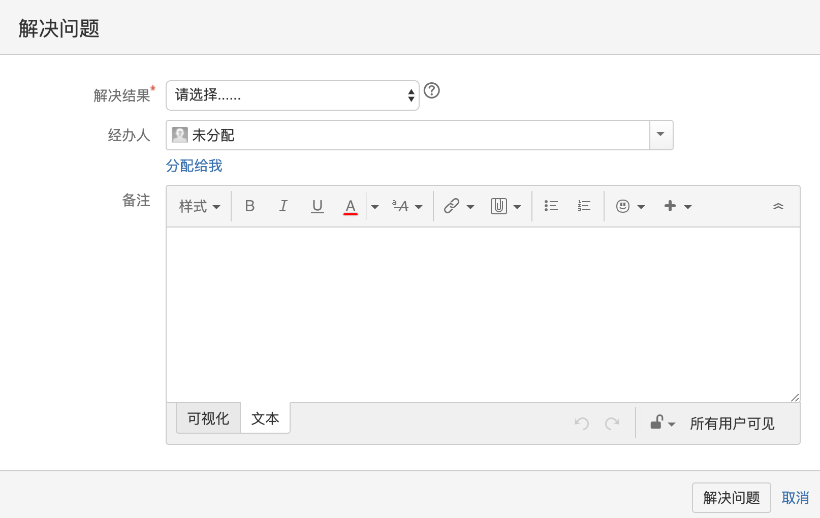 - 删除了修复版本,这样就不能在问题新建/修改界面操作修复版本字段,但是Jira的特性是只要对应的栏位有值,就会出现在界面上,所以不影响使用。