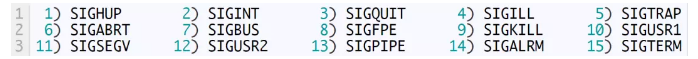 没有 stop 命令。在 Linux 中,有 kill 命令。kill 用于向进程发送信号。最常用的信号是“终止”(SIGTERM)或“杀死”(SIGKILL)。然而,还有更多。下面是一些例子。完整的列表可以用 kill -L 显示。