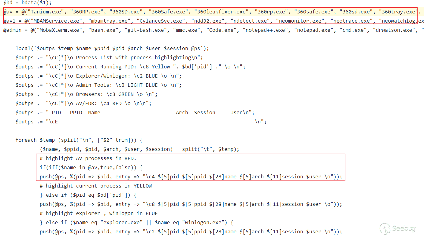 (1)ProcessColor.cna,一款Cobalt Strike的插件脚本,可以帮助我们标记出常见的安全软件、监控软件、分析软件。