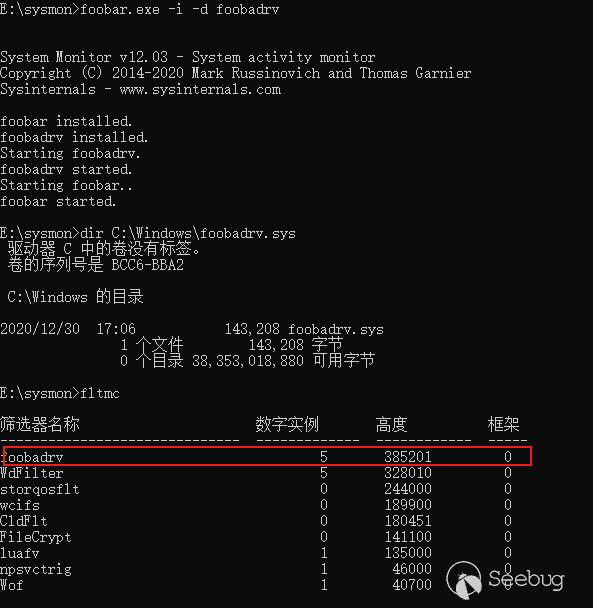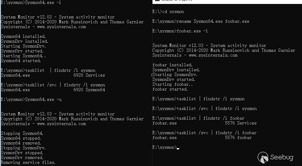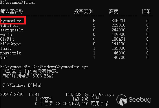 在常规的情况下,检查进程和服务名称就可以了解当前系统的安全软件运行情况,但是一些高级系统管理员会修改进程和服务的名称,我们就没办法判断了。Sunburst后门在环境检测中还检查了系统驱动,这些驱动大部分都是杀软和EDR产品使用的。这一点是值得红队人员借鉴的,下面以sysmon为例进行说明。