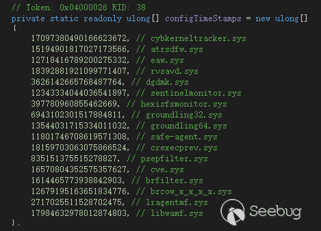 | 12343334044036541897UL | sentinelmonitor.sys (SentinelOne) |
