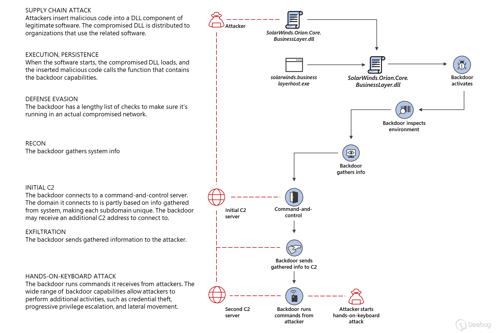 Sunburst后门总体流程可以简单地概括为以下几个阶段: