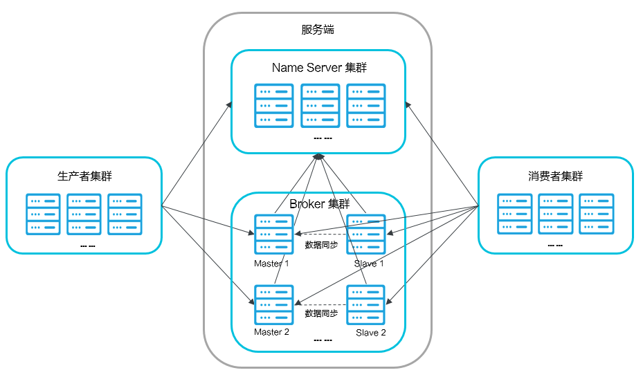 - 生产者:与Name Server集群中的其中一个节点(随机)建立长链接(Keep-alive),定期从Name Server读取Topic路由信息,并向提供Topic服务的Master Broker建立长链接,且定时向Master Broker发送心跳。