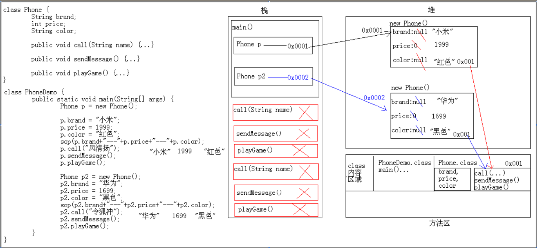 先上一个最容易理解的类实例化的内存模型案例截图: