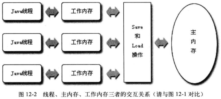 所以的变量都存储在主内存,每条线程还有自己的工作内存,保存了被该线程使用到的变量的主内存副本拷贝。线程对变量的所有操作(读取、赋值)都必须在工作内存中进行,不能直接读写主内存的变量。不同的线程之间也无法直接访问对方工作内存的变量,线程间变量值的传递需要通过主内存。