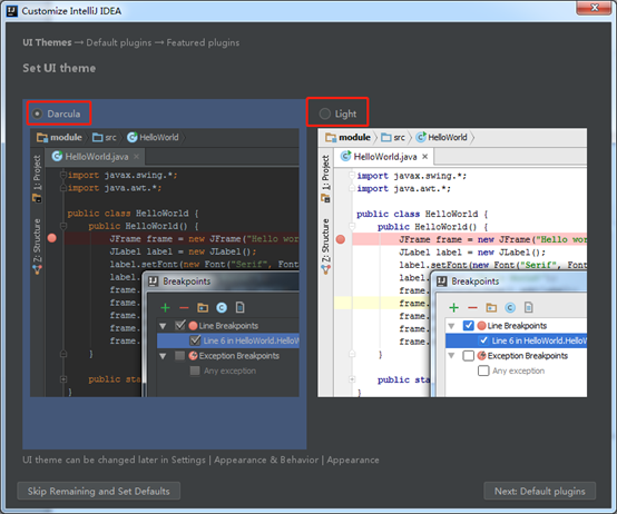 皮肤选择,默认提供黑白两种,可以先根据喜好选一种,进入IDE后可以重新设置。