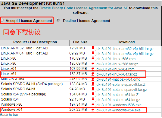 小版本和过去安装的保持一致,就选择:8u191,根据操作系统要求下载安装不同版本