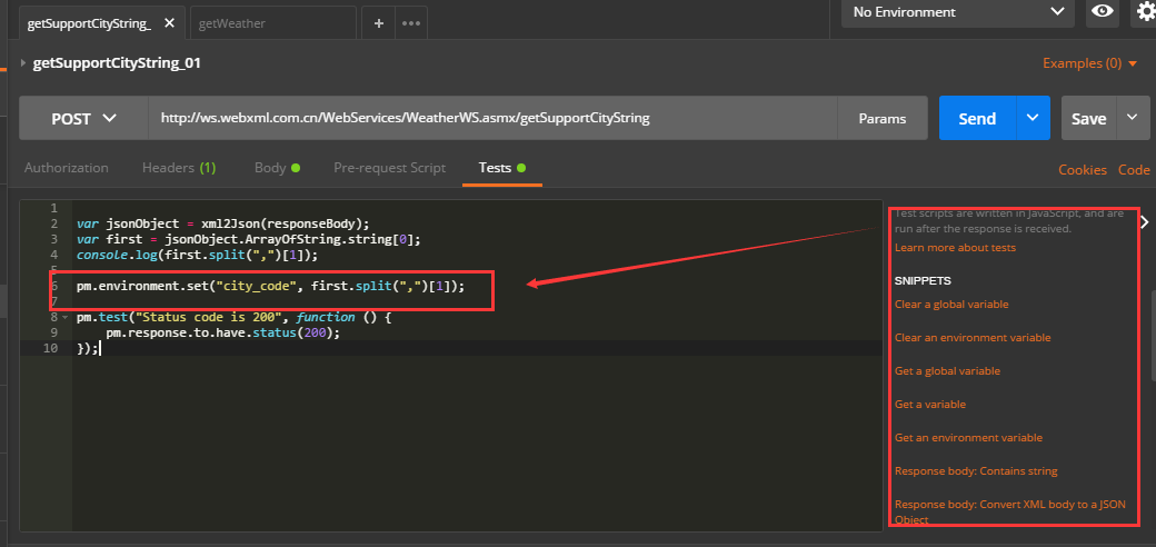 如:pm.environment.set("variable_key", "variable_value");来讲需要的数据保存在一个变量中
